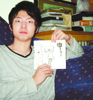 照片上這位90后小伙子是華老的粉絲,人大附中分校高三學(xué)生趙一甍。他從網(wǎng)上看到噩耗,馬上找出華老給他的珍貴題詞,回憶起9年前的一段往事:“我六七歲的時候迷上了家里的《華君武漫畫》,便照著里面的畫畫起來。因為喜歡《華君武漫畫》,后來,無論是華爺爺?shù)臅、文章,還是照片,我都收集。2001年,我跟著我的曲藝?yán)蠋熢诼?lián)歡會上表演節(jié)目,當(dāng)主持人介紹嘉賓時,我聽到了華君武的名字,這讓我非常激動。演完節(jié)目后,我跑到華君武爺爺身邊,他夸我演得好。我拿出我畫的漫畫給他看,他笑著說:畫得非常好。我便請爺爺給我簽個名。沒想到,華爺爺在上面題詞鼓勵我,寫了‘甍甍畫漫畫,要用自己的眼睛看世界畫世界。二 ○○一年秋 華君武 八十六歲’。”