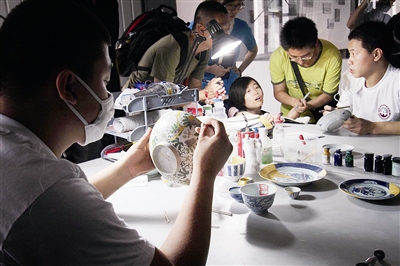 現(xiàn)場修復(fù)間與外面的文物展示區(qū)僅隔一道玻璃,觀眾在展示區(qū)參觀圓明園出土瓷片和老照片時,也可以近距離觀看文物修復(fù)過程。