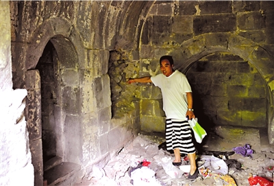 遺址內(nèi)一處標(biāo)有文物保護單位的“晏公祠”也遭人破壞,里面的石刻被鑿壞,洞穴內(nèi)還遺留著廢舊衣物、報紙、食品袋等垃圾。遺址內(nèi)的工人表示,他們是附近金山陵園的工人。但隨后趕到的金山陵園工作人員表示,此事與他們沒有任何關(guān)系,否認(rèn)此事為他們所為。