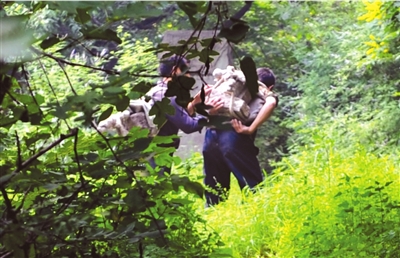 昨天上午,記者趕到香山法海寺遺址內(nèi)。剛進入大門,發(fā)現(xiàn)兩名工人正坐在石碑上休息,身邊有幾塊石塊被繩索捆綁上打算運走。這些工人表示,他們打算把石塊運走修路。