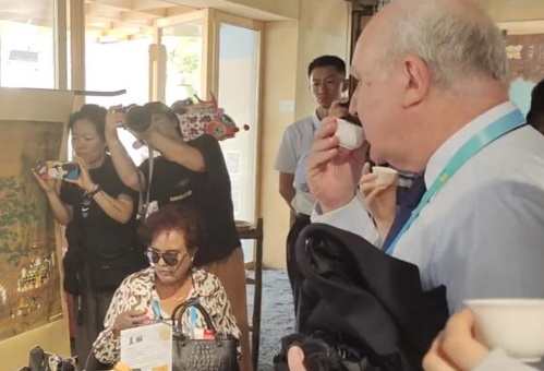 | 2023北京文化論壇14日上午在京開幕。當(dāng)天下午參加論壇的中外嘉賓前往通州大運河、城市綠心森林公園、北京藝術(shù)中心參觀。 |