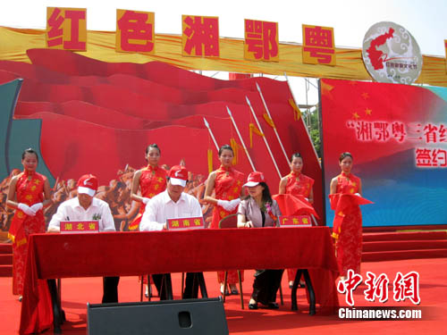 全國政協(xié)原副主席毛致用宣布2010年中國(湖南)紅色旅游文化節(jié)開幕式啟動(dòng)。在啟動(dòng)儀式上,湘鄂粵三省旅游局共同簽署《湘鄂粵三省紅色旅游聯(lián)盟》協(xié)議,緊扣“市場互推、線路互動(dòng)、游客互送”三大主題,借武廣高鐵為“媒”共同打造紅色旅游品牌。