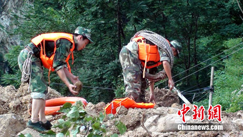 據(jù)介紹,接到搜救命令后,19名官兵迅速挺進(jìn)救援現(xiàn)場(chǎng),由于受暴雨侵襲,到大竹河鎮(zhèn)臨河村大部分道路交通中斷,通行非常困難,在前往臨河村的途中,險(xiǎn)情錯(cuò)綜復(fù)雜,并不時(shí)還有山石墜落,由于對(duì)當(dāng)?shù)氐匦蔚孛膊皇煜ぃw搜救隊(duì)員每前進(jìn)一步都帶著威脅,此路段全程12.8公里,再加上沒(méi)有交通工具此行顯得更加艱難,爬山,翻越,走水路渡船,雖然,大家的腳上都磨出泡。在歷時(shí)4小時(shí)后,全體隊(duì)員翻過(guò)一個(gè)又一個(gè)滑坡地段,穿越了一個(gè)又一個(gè)亂石集結(jié)的險(xiǎn)灘激流,終于按照上級(jí)規(guī)定的時(shí)間準(zhǔn)時(shí)到達(dá)目的地。