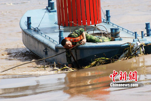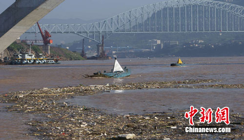 因此次洪峰對庫區(qū)航道的影響相對重慶主城較小,因此庫區(qū)萬州段航道沒有實施禁航,江面上還有大量的船只通行。為此,萬州的航道職工每天將花去近16小時專門清除懸掛在航標上的渣草,恢復(fù)被渣草掀翻的航標,以免影響輪船航行的安全。
