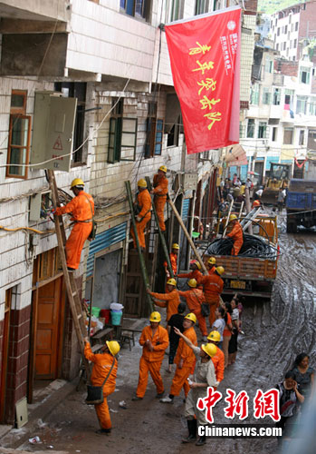 據(jù)成都電業(yè)局抗洪搶險(xiǎn)突擊隊(duì)負(fù)責(zé)人鐘守熙介紹,從21日早上6時(shí)起,突擊隊(duì)就投入到搶修江陵鎮(zhèn)供電系統(tǒng)恢復(fù)、戶表?yè)Q裝工作,經(jīng)過(guò)15個(gè)小時(shí)的連續(xù)奮戰(zhàn),突擊隊(duì)在抗洪搶險(xiǎn)的第一天就完成了1000米電纜線的架設(shè),115支戶表的安裝,還有300多戶表的供電恢復(fù)將全部在23日結(jié)束。