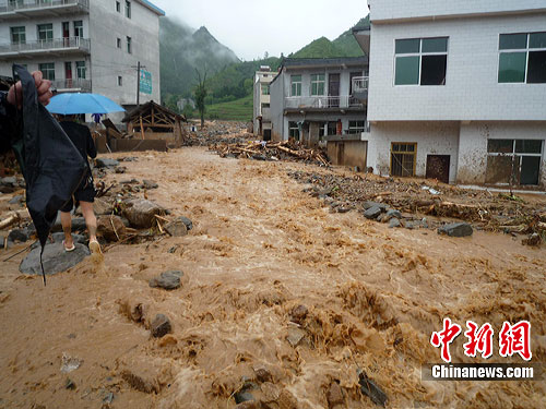 中新網(wǎng)西安7月27日電(記者 冽瑋 通訊員何衍貴)7月24日凌晨2時(shí)許,地處陜西省南部的商洛市丹鳳縣竹林關(guān)鎮(zhèn)遭遇山洪、泥石流襲擊,洪水退去后,原來(lái)平整的街道被厚度近2米的淤泥覆蓋,十噸以上的山石隨處可見(jiàn)。截至7月26日,暴雨致使該鎮(zhèn)失蹤9人死亡1人,經(jīng)濟(jì)損失目前尚無(wú)法估計(jì)。
