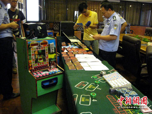 6月2日,佛山禪城警方再次搗毀一賭博窩點(diǎn),抓獲涉賭人員60多名,繳獲賭資30多萬元,大砍刀10把及賭博工具一批。據(jù)了解,賭場(chǎng)設(shè)在一家制衣廠內(nèi),白天工人上班,晚上開設(shè)賭場(chǎng)。