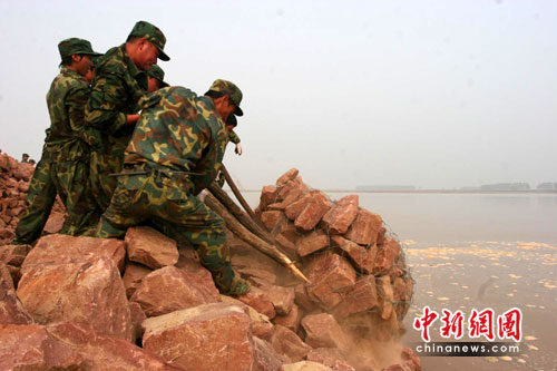 目前,鄭州市已組織駐鄭部隊(duì)官兵2800名和民兵預(yù)備役人員30000名分成兩個(gè)梯隊(duì),擔(dān)負(fù)黃河防汛任務(wù),另有部隊(duì)官兵和民兵預(yù)備役人員6700名負(fù)責(zé)水庫(kù)和內(nèi)河防汛。根據(jù)防汛預(yù)案,當(dāng)花園口出現(xiàn)4000至6000立方米每秒的洪水時(shí),黃河部分灘區(qū)會(huì)漫灘進(jìn)水,部分險(xiǎn)工、控導(dǎo)工程可能出現(xiàn)險(xiǎn)情,警備區(qū)和沿黃人武部將動(dòng)員組織第一梯隊(duì)民兵集結(jié)待命、做好搶險(xiǎn)準(zhǔn)備,加強(qiáng)對(duì)險(xiǎn)工險(xiǎn)段的守護(hù),發(fā)現(xiàn)險(xiǎn)情及時(shí)搶救,并及時(shí)救護(hù)受災(zāi)群眾。完