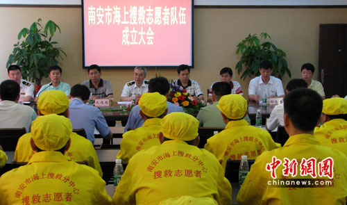 中新網(wǎng)南安6月21日電(林永傳 郭斌 )6月21日上午, 福建省首支海上搜救志愿者隊伍在南安石井港正式成立。