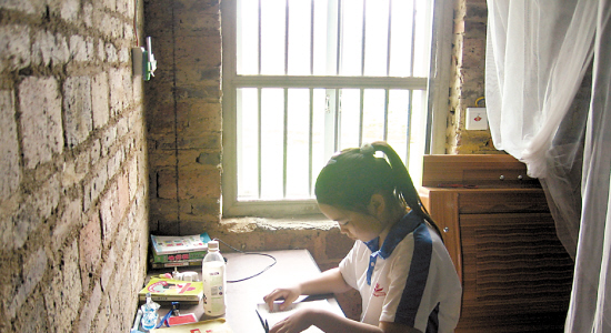 到了夜里9點左右,做完功課,一天的事情就都忙完了。這個時候,我躺在床上,聽著窗外稻田里蟈蟈的叫聲,覺得特別悅耳。因為得到社會捐助后,我已經(jīng)搬進了新磚房,甚至還有了自己的房間,不用再和雞“住”到一塊了,也不用聞著雞屎的臭味入睡了。