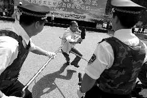 校園護衛(wèi)隊隊員上崗前,由武警部隊和公安民警負責進行了培訓。為了提升隊員們的綜合能力,還特別聘請了國外的安保專家給隊員們授課,包括緊急救護、擒拿格斗等方面的技能。