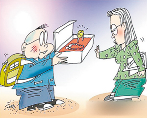 剎住教師節(jié)送禮之風(fēng),要從根源上對這種不正之風(fēng)加以遏制。首先,有關(guān)主管部門要及時出臺相關(guān)政策措施,加強(qiáng)輿論監(jiān)督引導(dǎo),使老師從根本上認(rèn)識到這樣做的危害,警惕“物欲”的引誘,堅決對送禮說“不”,自覺把握好自己的言行規(guī)范,處處為人師表。如此一來,師者才能贏得人們由衷的尊重,同時也可對社會風(fēng)氣的純正和凈化起到重要的引導(dǎo)作用。(文/沈林)