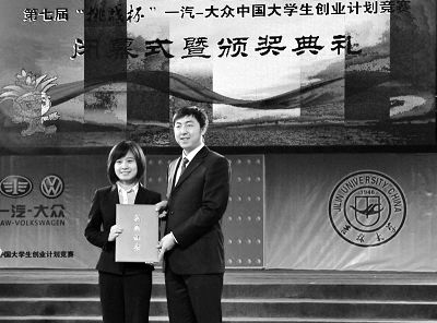 日前,有"大學(xué)生科技奧林匹克大賽"之稱的"挑戰(zhàn)杯"中國大學(xué)生創(chuàng)業(yè)計劃競賽終審決賽在吉林大學(xué)落下帷幕,山東經(jīng)濟(jì)學(xué)院的《山東潤禾科技有限責(zé)任公司》創(chuàng)業(yè)團(tuán)隊獲得最高獎-金獎,而這個創(chuàng)業(yè)團(tuán)隊的隊長就是該校大四女生-楊婷。令人驚奇的是,這個女生是學(xué)德語的,而她率隊獲獎的項目竟然是研究農(nóng)用化肥的!
