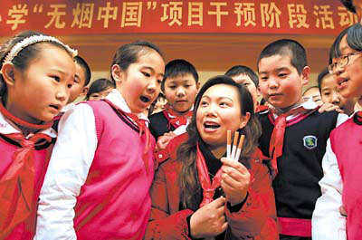 珊瑚實驗小學(xué)規(guī)定,任何人在教室、走廊、辦公室、操場、廁所等公共場所都不得吸煙,校領(lǐng)導(dǎo)當(dāng)場賦予全校數(shù)千學(xué)生監(jiān)督員的權(quán)力,若發(fā)現(xiàn)老師有違反規(guī)定的吸煙行為,都可直接向校長公開電話舉報。違反規(guī)定的吸煙老師,將受到扣發(fā)獎金、影響班組評先進等處罰。同時,珊瑚實驗小學(xué)專門開辟了一間“吸煙室”,防止學(xué)生受被動吸煙危害。