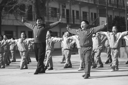 校園集體舞高潮過后,鄭州市又推出了少林拳(操)走進(jìn)小學(xué)的課程。同樣是缺乏老師,這次參加培訓(xùn)的仍是體育教師。少林拳(操)在學(xué)校的教授模式也依舊是階梯式傳授,高年級學(xué)生學(xué)會(huì)后教低年級學(xué)生,體育老師除正常的體育課程外,還要負(fù)責(zé)學(xué)、教學(xué)生這套少林拳(操),顯得力不從心。