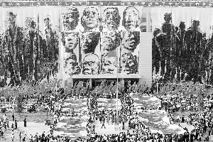 昨日,一場近萬名師生參與的行為藝術(shù),在中州大學上演,千名大學生齊揮黑色炭筆,在白色巨幅上描繪出21幅民工“老萬”頭像,每幅達50平方米。