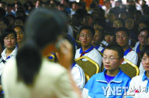 “天佑中華”主題教育活動(dòng)從下午4點(diǎn)30分開(kāi)始,在簡(jiǎn)單的問(wèn)候后北京十一學(xué)校教導(dǎo)處陳雪芬副主任向北川中學(xué)校長(zhǎng)劉亞春詢(xún)問(wèn),“是什么力量讓北川中學(xué)克服如此重重困難?”劉亞春校長(zhǎng)難掩悲痛地說(shuō):“其實(shí)作為教師,苦難中首先救助學(xué)生是教師本能的表現(xiàn)。對(duì)于那些罹難的師生來(lái)說(shuō),他們的生命不是消逝了而是永恒了,幸存者也變得更加堅(jiān)強(qiáng)。在今后的日子里,各方的關(guān)心和關(guān)注以及北川中學(xué)師生堅(jiān)強(qiáng)不屈的意志,都是我們戰(zhàn)勝艱難的最基本動(dòng)力!痹(huà)音剛落,北京十一學(xué)校近千名學(xué)生報(bào)以熱烈的掌聲。