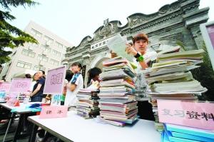 “眼看就要高考了,聽說他們連課本都沒有。”“我的高考結(jié)束了,我想我的資料能對(duì)他們在高考中考出好成績提供幫助!弊蛉丈衔9時(shí),剛剛結(jié)束高考的北京高三學(xué)生們在二中校門外將自己的復(fù)習(xí)資料捐贈(zèng)給災(zāi)區(qū),他們還將自己的祝福寫在復(fù)習(xí)資料的扉頁上,向經(jīng)受地震災(zāi)害的同齡人送去鼓勵(lì)。
