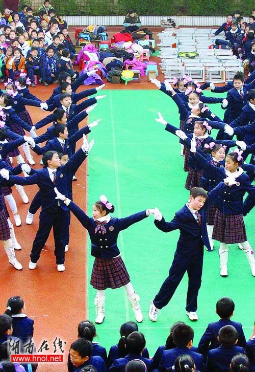 “校園集體舞在長(zhǎng)沙中小學(xué)校還是得到推廣了,現(xiàn)在學(xué)生們基本上都會(huì)跳,今年上半年舉行的校園集體舞比賽,就顯示不少學(xué)校組織得很好,學(xué)生們跳得很好!闭f(shuō)起校園集體舞目前有點(diǎn)令人始料未及的現(xiàn)狀,長(zhǎng)沙市教科院教研員周立德一再肯定之前的成績(jī),“這學(xué)期以來(lái)的情況不如以前,是有多方面原因的。我們和一些學(xué)校校長(zhǎng)交流,大家都并不反對(duì),關(guān)鍵在于怎么組織進(jìn)行!