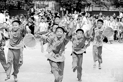 正是扎根在這樣深厚的傳統(tǒng)文化土壤中,“贛南采茶戲進(jìn)校園”活動(dòng)才有了無(wú)限生機(jī)。紅旗二小教師鐘麗華說(shuō):“現(xiàn)在家庭條件好了,許多孩子課余都會(huì)去學(xué)些器樂(lè)、舞蹈,但很大部分是三分鐘熱情。一方面是因?yàn)楹⒆觽兣d趣還沒(méi)定型,另一方面是學(xué)習(xí)環(huán)境使然,比如要孩子去學(xué)鋼琴,許多家庭祖祖輩輩都沒(méi)摸過(guò)鋼琴,孩子學(xué)習(xí)氛圍不濃。但學(xué)采茶戲就不同,贛南許多中老年人都有采茶戲情結(jié),能哼一段舞兩手的大有人在,像在我們學(xué)校,許多孩子學(xué)了戲回家,都是一家三代共同溫習(xí)。孩子在此找到了文化的根,學(xué)采茶戲成了家庭日常生活的內(nèi)容之一!