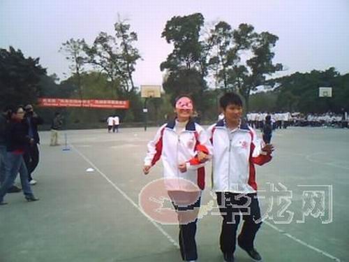 “什么都看不見(jiàn),完全沒(méi)有方向感,心里感到很害怕!痹25米盲人短跑接力賽上,高(一 )17班的周玲同學(xué)剛下場(chǎng)就緊張地對(duì)記者說(shuō)道。因?yàn)閹е壅郑麄(gè)世界都是黑暗的,只能在摸索中前進(jìn),最后,在伙伴的帶領(lǐng)下周玲才走到了終點(diǎn)。