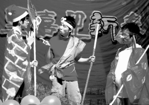 “幾天前,校園里就貼出了由文學(xué)院學(xué)生自編自導(dǎo)自演的山寨版《西游記》即將開演的消息,我們都是慕名而來,倒要看看這部所謂的“山寨劇”到底能把原著‘糟踐’到什么程度。”英語專業(yè)的劉同學(xué)說。