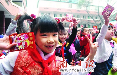 本報(bào)訊(記者/謝苗楓實(shí)習(xí)生/王芝露張晏)紅紅的中國結(jié)、大大的燈籠……昨天,廣州市140多萬中小學(xué)生正式返校上課,雖然春節(jié)已過,但孩子們還沉浸在節(jié)日的喜慶中。更開心的是,廣州還將在今年探索以補(bǔ)助方式逐步讓來穗務(wù)工就業(yè)農(nóng)民子女接受免費(fèi)義務(wù)教育。
