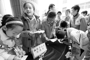 昨天,在中關(guān)村一小校園內(nèi)有六七個(gè)小分隊(duì)擺攤招募志愿者,除了系鞋帶外,潔廁、護(hù)綠、安全、節(jié)水節(jié)電、社區(qū)服務(wù)等都是志愿者分隊(duì)的服務(wù)內(nèi)容。“希望學(xué)生把‘志愿’意識(shí)融入生活,形成新的生活方式!痹搶W(xué)校有關(guān)負(fù)責(zé)人介紹說,新學(xué)期學(xué)校將實(shí)行志愿者注冊(cè),為學(xué)生配發(fā)志愿者證。學(xué)生志愿服務(wù)的內(nèi)容和時(shí)間、參加培訓(xùn)的經(jīng)歷、獲得的榮譽(yù)稱號(hào)、志愿活動(dòng)的證明人等都會(huì)詳細(xì)記錄在上面。學(xué)生參與志愿服務(wù)的時(shí)間每學(xué)期不得低于50個(gè)小時(shí),中高年級(jí)學(xué)生還將參加校外的社區(qū)服務(wù)活動(dòng)。晨報(bào)記者 李木易/攝