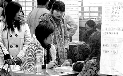 來自許昌學(xué)院的陳明軍告訴記者,經(jīng)過3個多月找工作的艱苦經(jīng)歷,他對未來工資的期望值已經(jīng)從原本的月薪2000元跌到了1000元!捌鋵(shí)我們應(yīng)該懂得變通,這樣才能應(yīng)對就業(yè)壓力。”記者在現(xiàn)場了解到,大多數(shù)畢業(yè)生對薪酬的期望值在1000元左右,800元也可以接受,試用期工資600元一個月就行。
