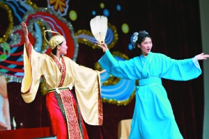信息時(shí)報(bào)訊 (記者 梁健敏 通訊員 黃雄) 話說(shuō)“周瑜”拜訪“曹操”,隨從就在一旁提醒千萬(wàn)別提“小喬”,不過(guò)“周瑜”機(jī)警地回答道:“我有氫氧化鈉可以中和醋酸,不怕……”以上的對(duì)話是昨日廣鐵一中的第19屆藝術(shù)節(jié)上,舞臺(tái)劇表演《周瑜那些事》中的一幕。時(shí)下惡搞成風(fēng)已經(jīng)進(jìn)入學(xué)生群體,到底是創(chuàng)新還是破壞原著遭到質(zhì)疑。