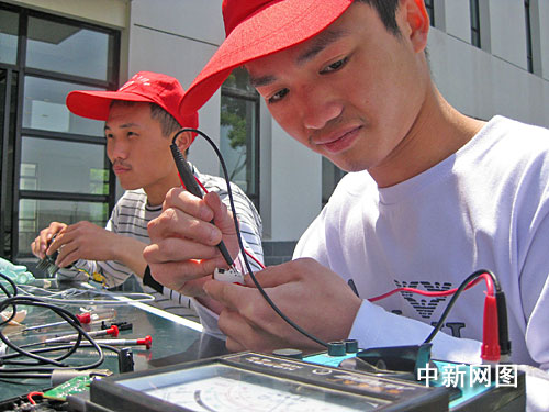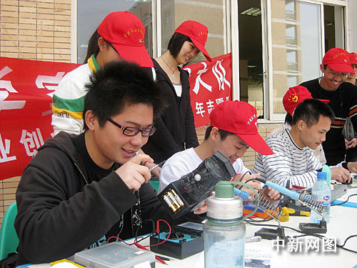 4月26日,浙江紡織服裝職業(yè)技術(shù)學(xué)院大學(xué)生就業(yè)創(chuàng)業(yè)協(xié)會組建青年志愿隊,和寧波大學(xué)理學(xué)院家電維修社聯(lián)合開展維修小家電活動。他們在校園內(nèi)設(shè)攤,用一天時間免費為同學(xué)們修理電風(fēng)扇、電吹風(fēng)、MP3等各種小家電200余件。