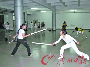 本報訊 (記者盧迎新 實習生 李婷婷攝影報道)暨南大學有個短兵協(xié)會,每周的周二、周四、周日晚上,會員們都集中練習。這種對抗性強的運動受到在校博士碩士們的熱捧,尤其吸引了一些平日里斯文纖弱的女博士加入,她們表示:“就算被打也很爽快,認為是一種時尚!