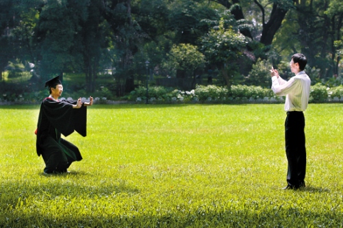 畢業(yè)生的節(jié)日上,穿上學(xué)士服一本正經(jīng)地拍好畢業(yè)照之余,他們還用各式各樣活潑的方式慶祝屬于自己的成人禮。鬼馬可愛,這是昨天記者在中山大學(xué)發(fā)現(xiàn)的理工學(xué)院畢業(yè)生嚴(yán)肅形象以外的另一面。炎熱的天氣難擋他們放飛的心情,在當(dāng)前嚴(yán)峻的就業(yè)形勢下,這種樂觀積極的心態(tài)顯得尤為重要。 本報(bào)記者 何奔 攝影報(bào)道