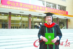 中山大學昨日舉行的兩場畢業(yè)典禮出了兩個人物,第八場畢業(yè)典禮上出了個66歲的碩士,第十一場畢業(yè)典禮則出了個66歲的學士。同樣是60多歲的年紀,兩位老人同樣選擇了重回校園,背后有什么樣的動力支撐著他們?