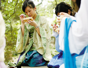 本報(bào)訊 (記者 沈軼倫 實(shí)習(xí)生 顧薇)昨天,民間社團(tuán)“漢未央”在中山公園組織了一場(chǎng)七夕乞巧祈;顒(dòng)。女孩們身著漢服,頭戴金釵,模仿古人開展七夕乞巧祈福活動(dòng)。