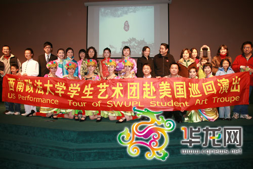 1月26日晚,巡演團在美國蒙大拿州密蘇拉市劇院舉行赴美首場演出,同時慶祝西南政法大學與蒙大拿大學合辦的蒙大拿大學孔子學院正式揭牌。2月5日中午12時,巡演團在俄亥俄州的克里夫蘭州立大學完成赴美的最后一場演出,美方院長陳麗卿博士將此次演出譽為該院承辦的最成功的演出。
