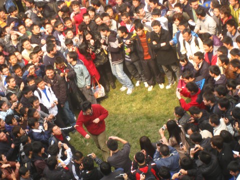 到今日中午,更有上千名“慕名”前來的校內(nèi)外學生在女生所指定的樓下“圍觀”,等待著膽大的男生前來呼叫女主角,附近學校甚至有學生“組團”前往,并不斷有網(wǎng)友上網(wǎng)發(fā)帖報告事件進展。據(jù)網(wǎng)帖稱,稍后有一穿紅衣男子前來表白,將現(xiàn)場引向高潮。