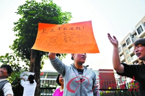昨日下午4時(shí),數(shù)10名家長聚集在了該幼兒園門口,部分心情激動的家長還打出了寫著“堅(jiān)決反對漲價(jià)”和“退回多收學(xué)費(fèi)”的牌子。