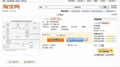 昨日,記者在淘寶網(wǎng)試著搜索“三方協(xié)議”這一關鍵詞,發(fā)現(xiàn)確有賣家,而且數(shù)量不少。這些賣家大部分標價400元,最低也有300多元,這些合同大多標明了一些江蘇地區(qū)高校,其中一份北京地區(qū)的三方協(xié)議則開價高達1300元。交易記錄顯示,400元和1300元的協(xié)議近日均有買家。