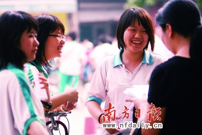 而來得早的學(xué)生們圍在學(xué)校對面的小賣部門前,三五成群地吃著雪糕聊天!安慌鲁詨亩亲佑绊懣荚嚸?”面對記者的提問,佛山四中3名女生笑著說:“不怕!碑(dāng)被問及緊不緊張的時候,其中一個戴眼鏡的女生笑著說:“說緊張那是以前的事了,經(jīng)過這么長時間復(fù)習(xí),心態(tài)早就調(diào)整好了!彼齻兊募议L都沒來也不準(zhǔn)備來送考!拔也蛔屗麄儊,來不來沒什么分別,他們還要上班!奔易⌒l(wèi)國路的小劉對考后對答案也不忌諱,“當(dāng)然是最好不要對了,不過對不對沒什么關(guān)系!