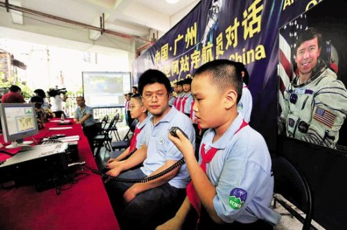 據(jù)同福中路第一小學(xué)曹德輝校長(zhǎng)介紹,該校有一位無線電的超級(jí)發(fā)燒友周文就老師,他帶領(lǐng)學(xué)生在課外進(jìn)行無線電通聯(lián)活動(dòng),卓有成效,許多學(xué)生在國(guó)內(nèi)專項(xiàng)比賽中奪金掠銀。這次為準(zhǔn)備用對(duì)講機(jī)直接與太空站的宇航員通話,他們足足用了兩年時(shí)間,包括投資設(shè)備、培訓(xùn)學(xué)生、申請(qǐng)通聯(lián),重要的是要等國(guó)際空間站飛越廣州上空,據(jù)悉,這次的活動(dòng)是得到美國(guó)宇航局的同意,并安排邁克爾·巴瑞特用太空站上的業(yè)余電臺(tái)呼號(hào):NA1SS,接受同福中路第一小學(xué)業(yè)余電臺(tái)BY7KTO的通聯(lián)。