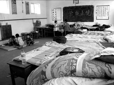 考慮到安全問題,事發(fā)后,在校住宿的十余名學(xué)生被轉(zhuǎn)移,臨時安置在教室內(nèi)過夜。截至昨晚記者發(fā)稿時,孩子們?nèi)匀恢荒茉诮淌覂?nèi)拼課桌當(dāng)床過夜。