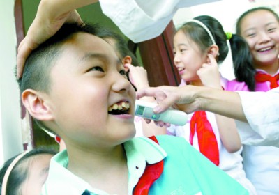 “校長,孩子昨天發(fā)寒熱了,今天就不來上課了。 ”今天一早8:00,吳奶奶趕到虹口三中心小學(xué),抱歉地向校長請假。 “沒關(guān)系,落下的課老師會幫著補上的,在家好好休息。 ”校長安慰說。今天是開學(xué)第一天,滬上中小學(xué)都 “繃”緊嚴防甲流這根“弦”,不少學(xué)校的校醫(yī)和校長一起站在校門口,迎接每位學(xué)生的到來。少數(shù)體溫超過37.5℃的學(xué)生都被勸回,部分發(fā)燒的孩子也自覺留在家休息。