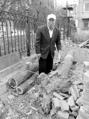 現(xiàn)場:被伐大樹幼兒園內(nèi)被“肢解”
