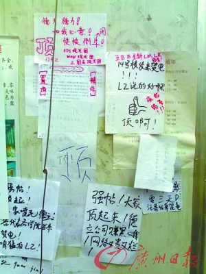 上海第二工業(yè)大學(xué)河?xùn)|校區(qū)的一些學(xué)生,因不滿校園網(wǎng)速極慢,連上QQ都困難,紛紛在寢室門口張貼出一份份類似網(wǎng)上灌水的“跟帖”,集體聲討學(xué)校網(wǎng)絡(luò)公司(如圖)。有同學(xué)把這種頂帖的盛況拍下來放到網(wǎng)上,引來不少網(wǎng)友的關(guān)注,有網(wǎng)友稱平時(shí)大家在網(wǎng)上發(fā)牢騷,學(xué)校根本不知道,但通過這種現(xiàn)實(shí)跟帖的方式,學(xué)校就不得不關(guān)注。上海第二工業(yè)大學(xué)相關(guān)負(fù)責(zé)人回應(yīng)稱,目前事情已經(jīng)解決。