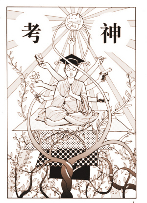 “考神”,全稱為“考試必過神”,原是校內(nèi)網(wǎng)上虛擬人物”。隨著“掛科了沒?”這句話成為南京各所高校學(xué)生見面的問候語,補(bǔ)考前在“考神”公共主頁上發(fā)帖“拜考神”,也已成為大學(xué)生的一種另類時(shí)尚。