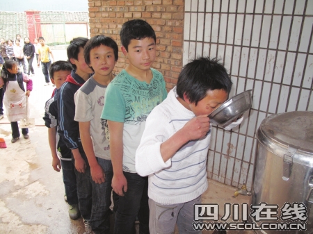 “同學(xué)們,現(xiàn)在是集中供水時間,請大家排好隊(duì)到供水點(diǎn)喝水。”24日下午2時,橫江鎮(zhèn)西林村堰村小學(xué),校長官文權(quán)敲響了清脆的鐵鐘,孩子們從各班級教室里蜂擁而出,跑向操場邊的開水爐旁排隊(duì)。