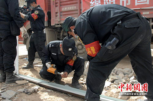 中新網(wǎng)成都4月19日電 (陳鳳丹)19日下午3時(shí),玉樹縣當(dāng)代西路46號(hào)民族中學(xué)內(nèi),在玉樹縣執(zhí)行抗震救災(zāi)任務(wù)的成都公安特警支隊(duì)聯(lián)合四川綿陽市某建材集團(tuán),開始著手搭建16間板房教室,為玉樹縣民族中學(xué)學(xué)生恢復(fù)上課創(chuàng)造必要條件。
