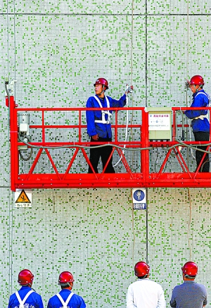 這 93名考生分別由11家保潔公司推薦,都有高層建筑保潔工作經(jīng)驗(yàn),考試之前全部經(jīng)過100學(xué)時(shí)的培訓(xùn)。43歲的付正會從事高層建筑保潔工作有十幾年了,鳥巢、水立方的“洗臉”工程都參與過!跋聒B巢這樣的大項(xiàng)目,要50多人干上半個(gè)月呢!备墩龝f,這工作收入不低,但有些危險(xiǎn),干活兒的工人都應(yīng)該經(jīng)過專業(yè)培訓(xùn)和考試。