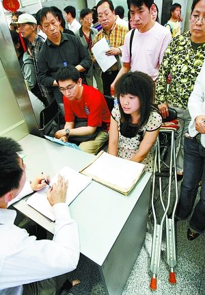招聘會(huì)8時(shí)30分開始。7時(shí)許,北京人才服務(wù)中心就已經(jīng)迎來了不少殘疾人。據(jù)市殘聯(lián)職業(yè)介紹中心主任李雪梅介紹,這里面還包括來自全國(guó)20多個(gè)省市的外地殘疾大學(xué)生。